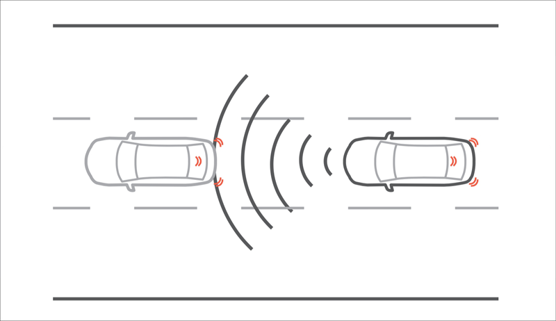 ระบบเตือนการชนด้านหน้าและช่วยเบรกอัตโนมัติ แบบ Advance ระบบจะตรวจจับรถคันหน้า จักรยาน รวมถึงคนเดินถนน หากพบว่ามีความเสี่ยงที่จะเกิดอุบัติเหตุจากการชน ระบบจะส่งสัญญาณเตือนและเสียงเตือนอย่างต่อเนื่อง ถ้าผู้ขับไม่ได้ทําการเบรก ระบบจะช่วยเบรกให้โดยอัตโนมัติ เพื่อลดโอกาสในการเกิดอุบัติเหตุ