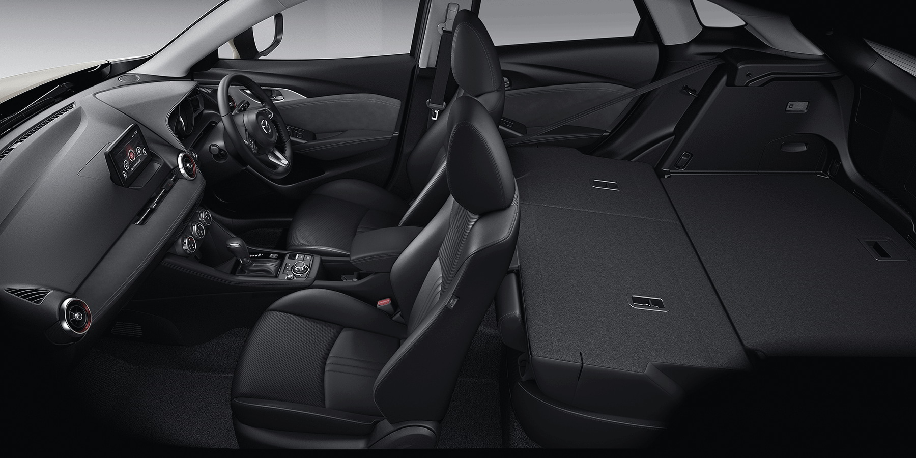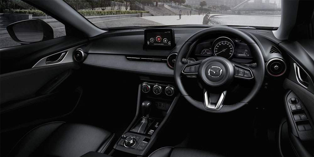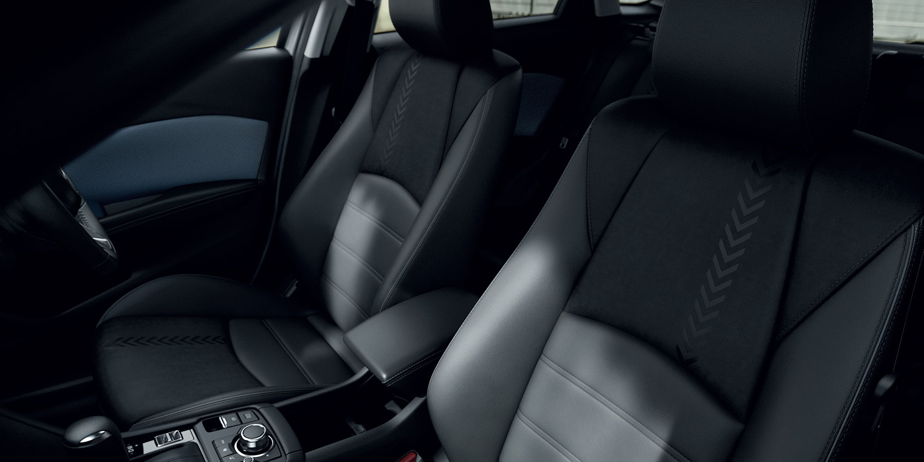 สัมผัสความประณีต พิถีพิถันทุกรายละเอียด ภายในห้องโดยสารของ New Mazda CX-3 ที่ยกระดับงานดีไซน์ไปอีกขั้น ด้วยวัสดุเกรดพรีเมี่ยม พร้อมเพิ่มความโดดเด่นอันเป็นเอกลักษณ์ด้วยคอนโซลหน้าแบบ Grand Luxe Suede® สีเทา ผสานกันอย่างลงตัวกับเบาะหนังสีดําตัดด้วยด้ายสีเทา* *เฉพาะรุ่น 2.0 Comfort