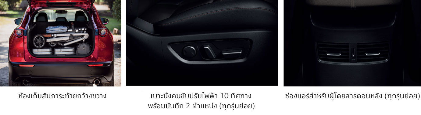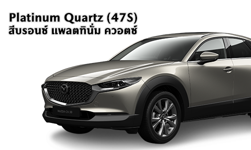 New Mazda CX-30 ครอสโอเวอร์เอสยูวี ที่พร้อมเติมเต็มความหมายให้กับทุกด้านของชีวิตอย่างมีสไตล์ ด้วยดีไซน์ที่เป็นเอกลักษณ์ เรียบง่ายแต่งดงาม คงไว้ซึ่งความสปอร์ตปราดเปรียว พรีเมี่ยมอีกระดับ กับสีใหม่ Platinum Quartz ไฟหน้าและไฟท้ายแบบ LED Signature ภายในห้องโดยสารกว้างขวาง สะดวกสบาย พิถีพิถันทุกรายละเอียด พร้อมมุมมองที่เหนือกว่ากับหลังคาซันรูฟแบบไฟฟ้า มั่นใจทุกเส้นทาง กับเทคโนโลยีความปลอดภัยเหนือระดับ และสมรรถนะที่ตอบสนองดั่งใจ เพื่อพร้อมเปิดประสบการณ์ ให้ชีวิตได้พบมุมมองใหม่และเติมเต็มความหมายมากกว่าเดิม