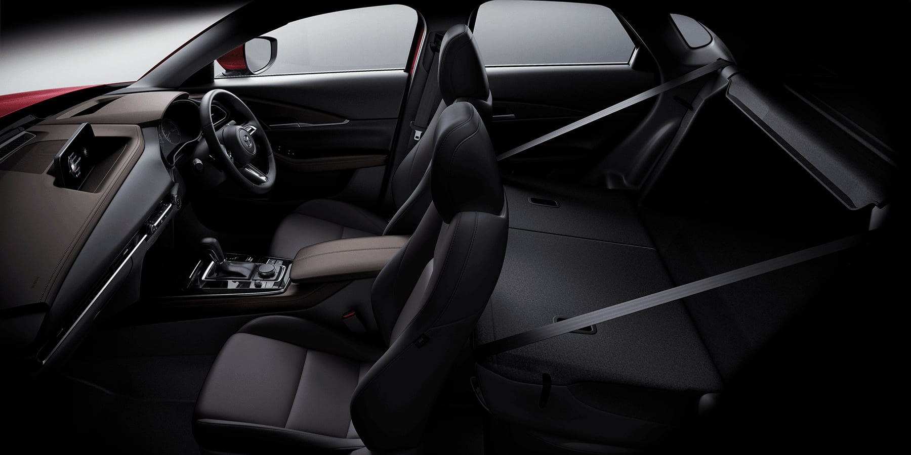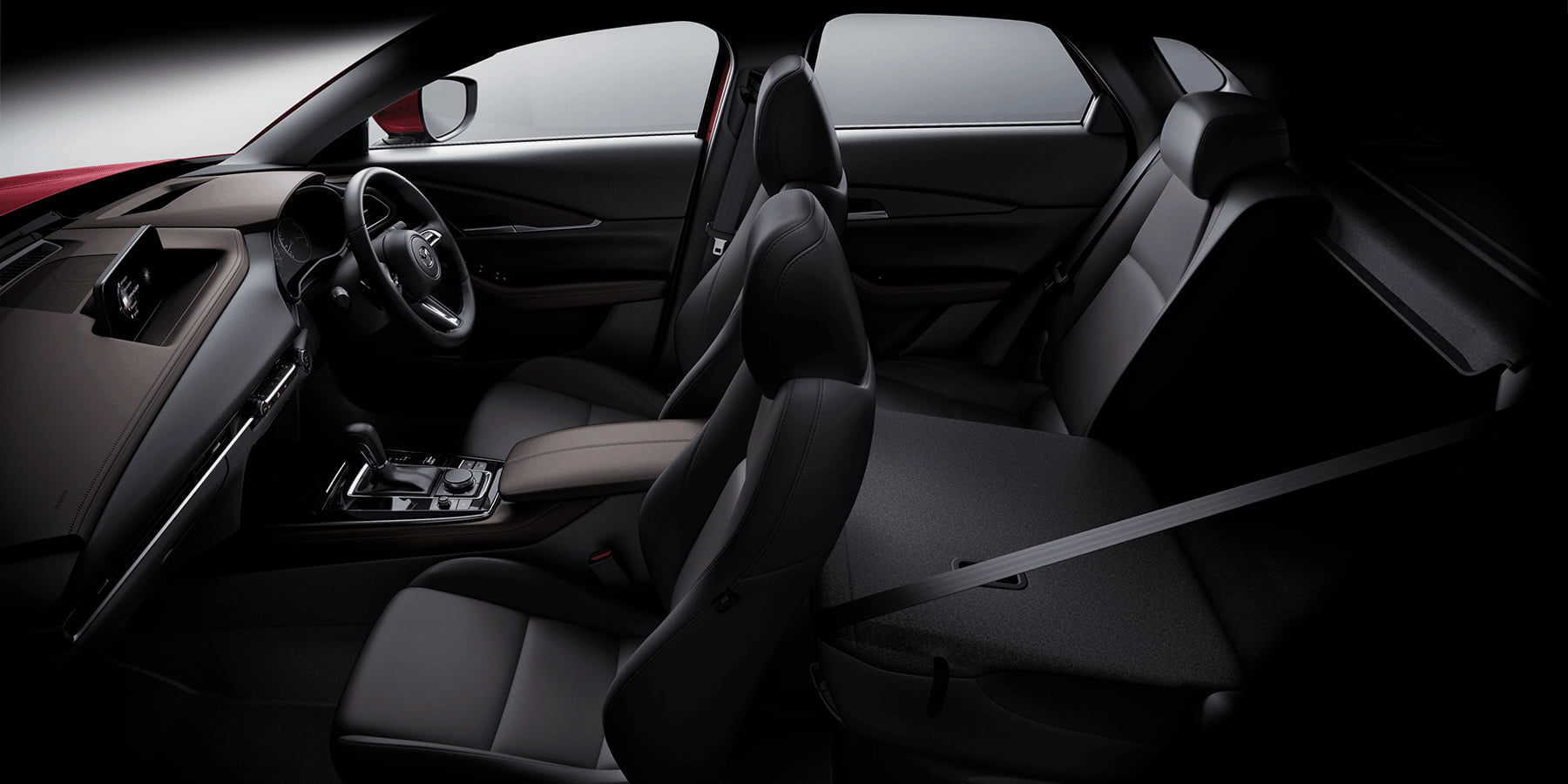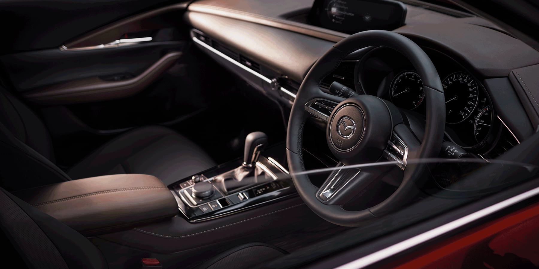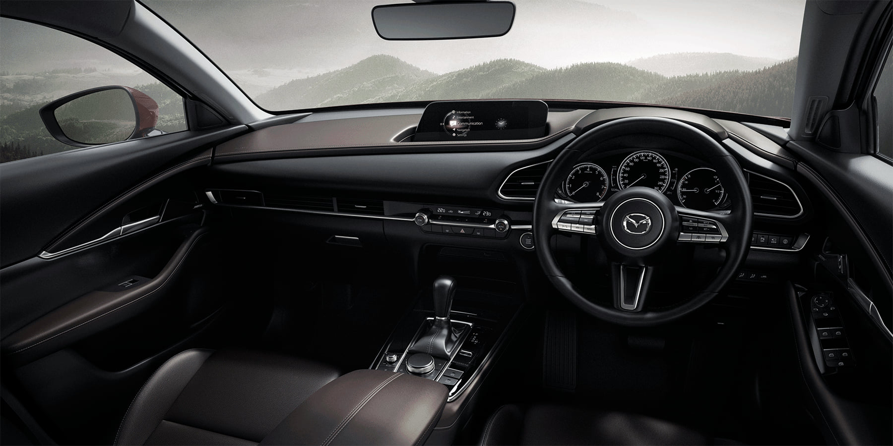 New Mazda CX-30 ที่ให้ทัศนวิสัยในแบบครอสโอเวอร์เอสยูวี ถูกพัฒนาขึ้นโดยคำนึงถึงการใช้งานและประโยชน์ใช้สอยเตามหลักปรัชญา Human Centric Philosophy ทั้งเบาะนั่งที่ถูกออกแบบให้โอบกระชับรองรับสรีระ และท่านั่งที่เหมาะสม รวมถึงพวงมาลัย และคันเร่งที่จัดวางไว้ในตำแหน่งที่ลงตัวกับธรรมชาติของการใช้งาน การออกแบบฟังก์ชั่นและการจัดวางอุปกรณ์ต่างๆ ภายในรถให้อยู่ในตำแหน่งที่สอดคล้องกับการเคลื่อนไหวของร่างกายและประสาทสัมผัสทั้งห้า ตามปรัชญา HMI (Human-Machine Interface) ช่วยให้ผู้ขับไม่ต้องละสายตาจากถนน และสัมผัสได้ถึงความเป็นหนึ่งเดียวกันระหว่างคนกับรถ