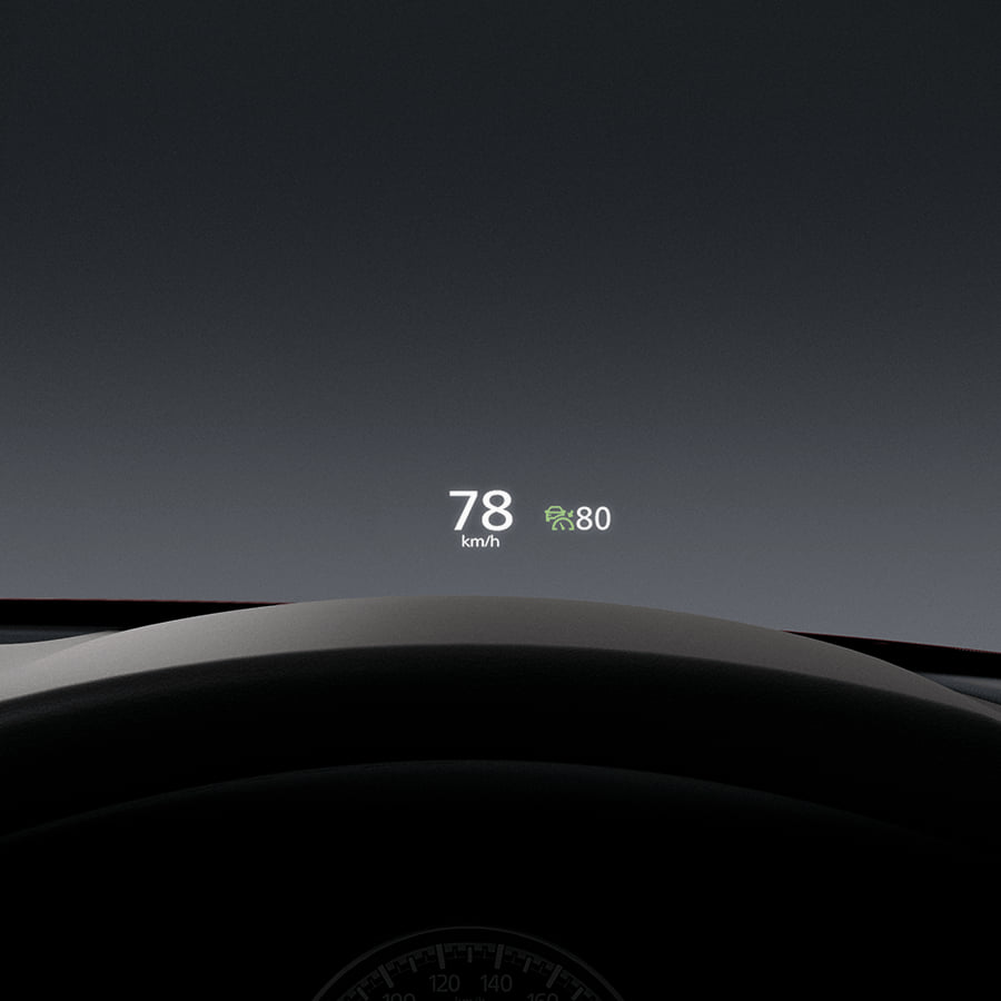 หน้าจอแสดงข้อมูลการขับขี่แบบสี บนกระจกหน้า (Windshield Active Driving Display)