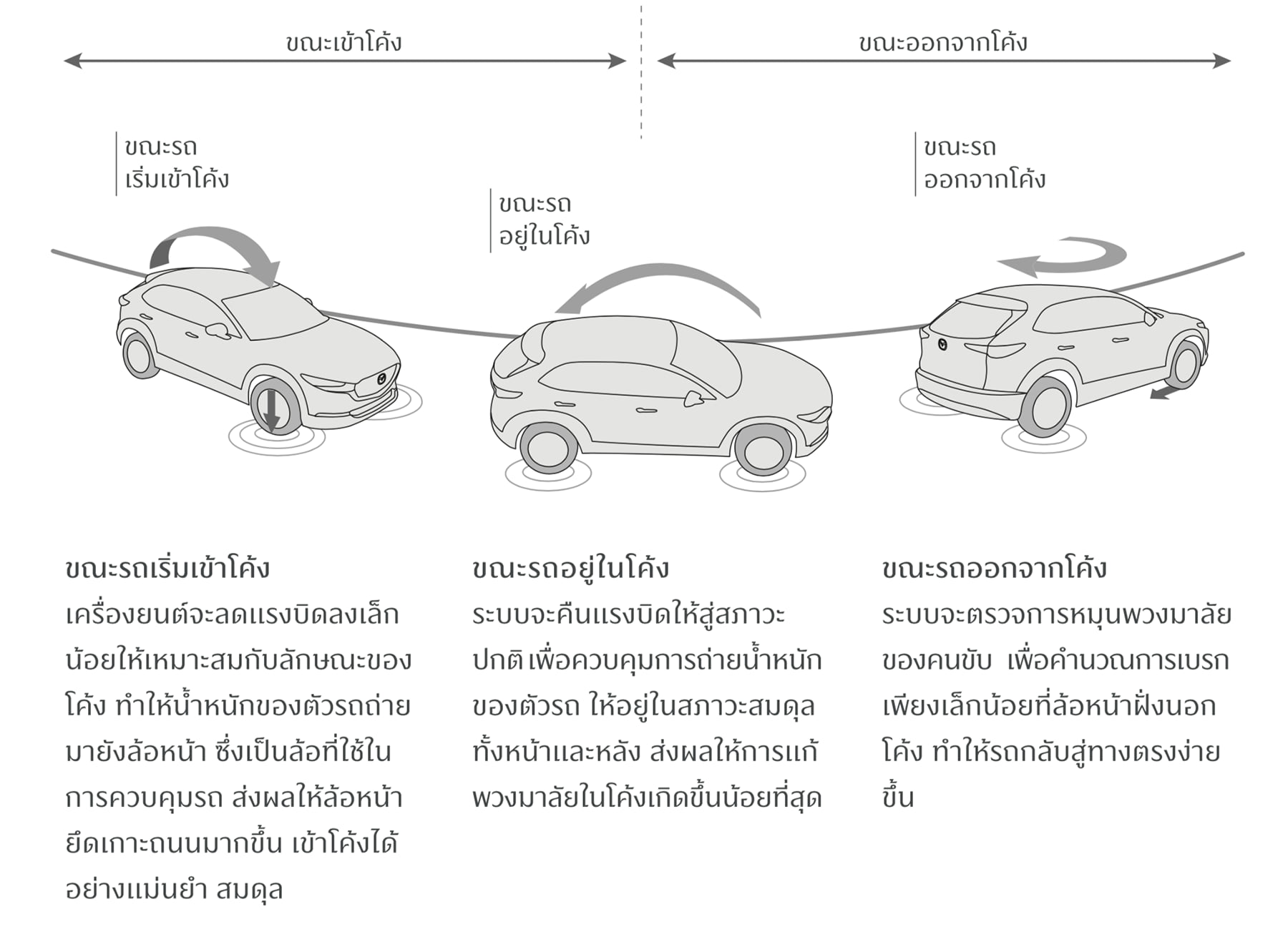 ระบบ GVC Plus หนึ่งในเทคโนโลยีภายใต้ Skyactiv-Vehicle Dynamics พัฒนาต่อยอดจากระบบ GVC ช่วยควบคุมสมรรถนะในการขับขี่ให้แม่นยำและสมดุล โดยเฉพาะในทางโค้ง และในสถานการณ์ฉุกเฉินได้ดียิ่งขึ้น เพื่อให้ผู้ขับ New Mazda CX-30 สัมผัสถึงความรู้สึกเป็นหนึ่งเดียวกันของคนกับรถสมบูรณ์แบบยิ่งขึ้น