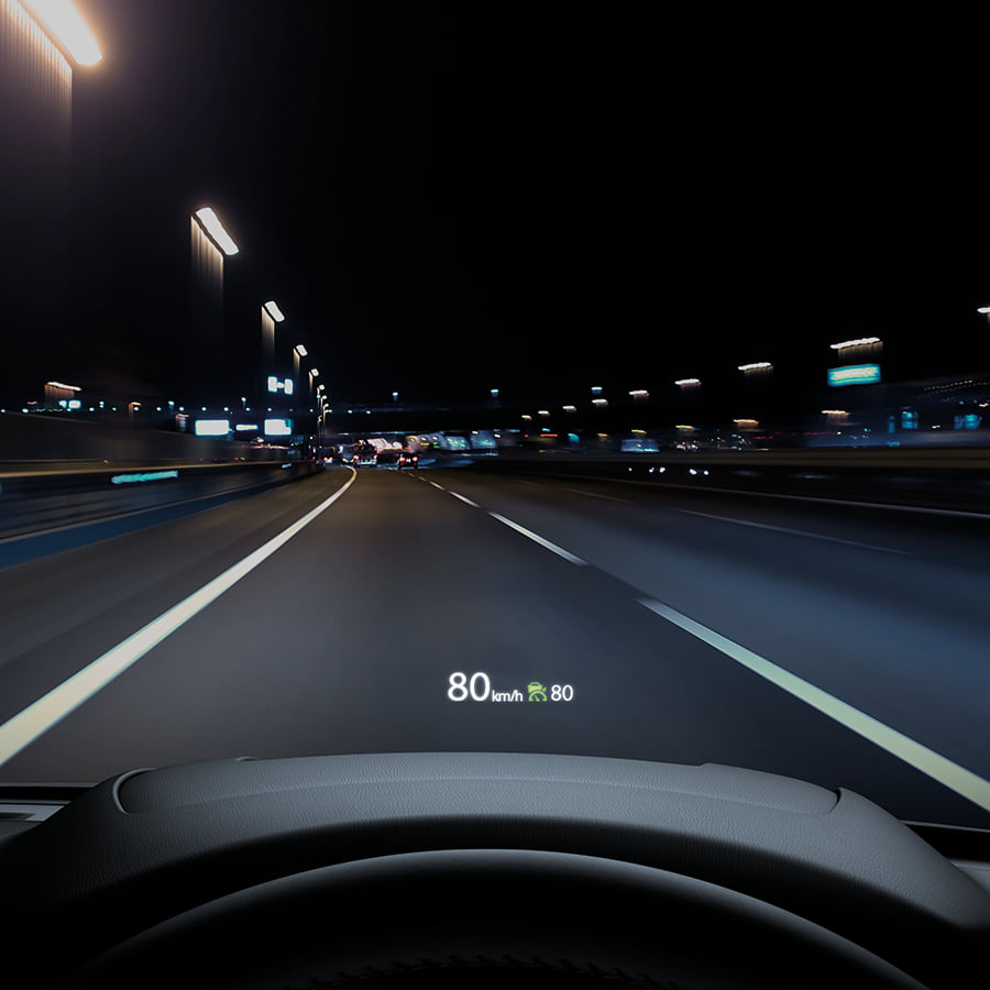 หน้าจอแสดงผลข้อมูลการขับขี่แบบสี บนกระจกหน้า Windshield Active Driving Display