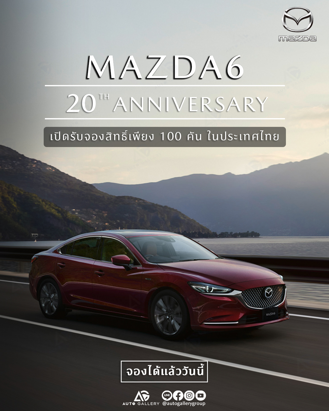 บริษัท มาสด้า เซลส์ (ประเทศไทย) จำกัด ฉลองครบรอบ 20 ปี Mazda6 20th Anniversary Edition นำเข้ารถยนต์นั่งสปอร์ตซีดานระดับไฮเอนด์ที่ให้ความหรูหรา ภูมิฐาน จากประเทศญี่ปุ่น เปิดให้คนไทยได้สัมผัสและเป็นเจ้าของรับจองสิทธิ์เพียง 100 คัน เพื่อเจาะตลาดกลุ่มลูกค้าระดับพรีเมี่ยม นักธุรกิจชั้นแนวหน้าของเมืองไทย ผู้บริหารระดับผู้นำสูงสุดขององค์กร โดยจะเริ่มเปิดให้ลูกค้าจองสิทธิ์เพื่อเป็นเจ้าของรถยนต์รุ่นพิเศษได้ตั้งแต่วันนี้เป็นต้นไปผ่านผู้จำหน่ายทั่วประเทศไทย ราคาจำหน่ายอยู่ที่ประมาณการ 2.4 ล้านบาท พร้อมโปรแกรมคุ้มครองและดูแลรถ Mazda Ultimate Service นานสูงสุด 7 ปี และฟรีประกันภัยชั้นหนึ่ง Mazda Premium Insurance 1 ปี รวมถึงสิทธิพิเศษต่างๆ อีกมากมาย